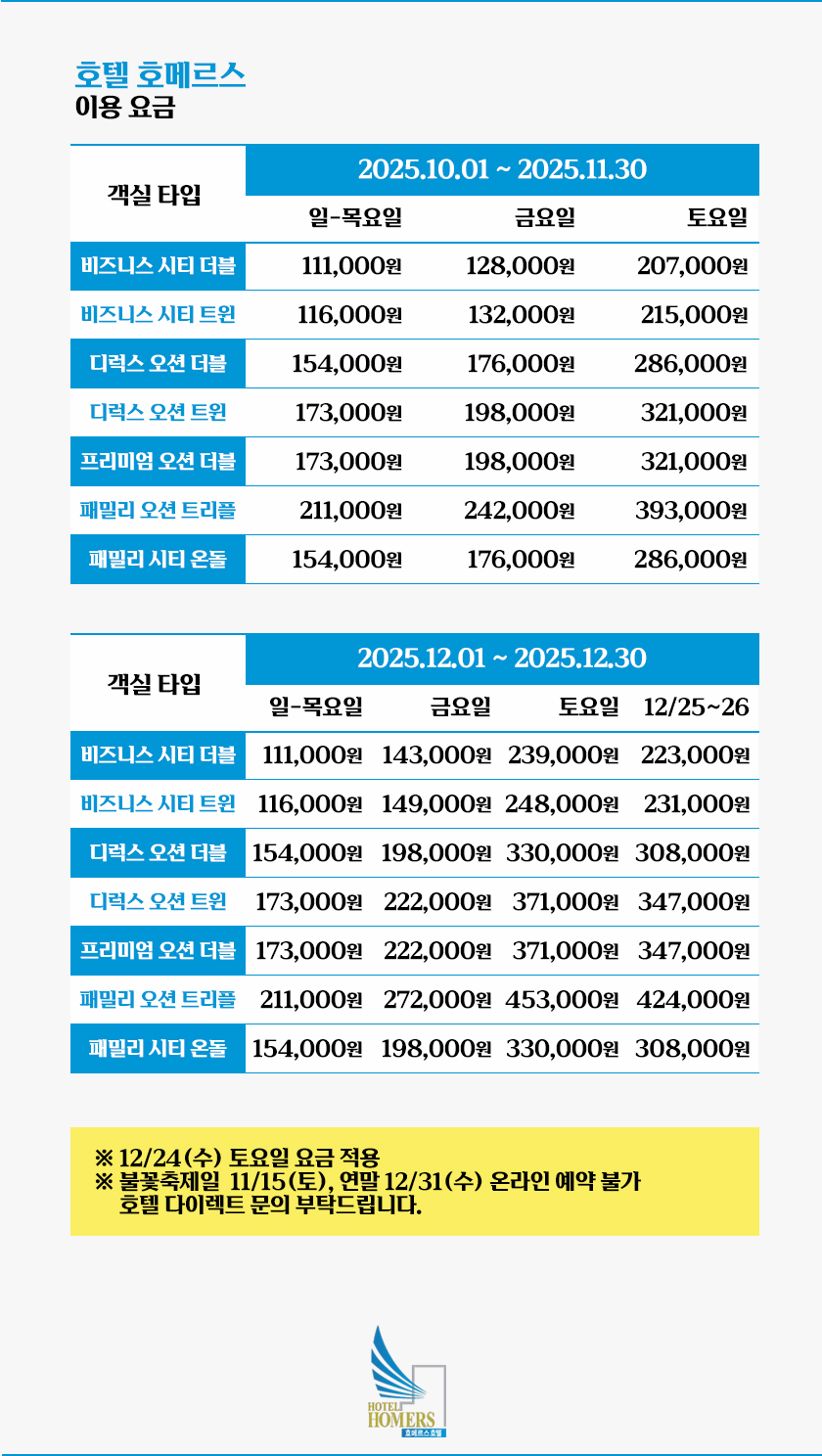· 객실 마감일 경우, 예약 건 안내 후 취소처리됩니다.