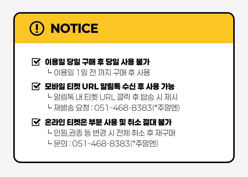 ㆍ ①티켓구매 → ②알림톡 수신 → ③시티투어 버스 기사님께 모바일 URL 제시, 실물 팔찌(탑승권)로 교환 후 이용