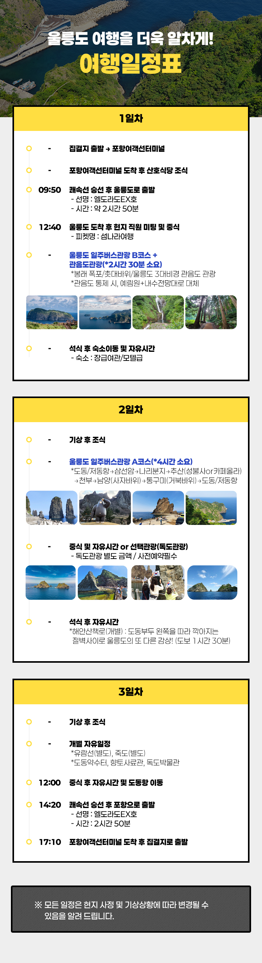 ㆍ울릉도 일주버스관광 A코스, B코스+관음도