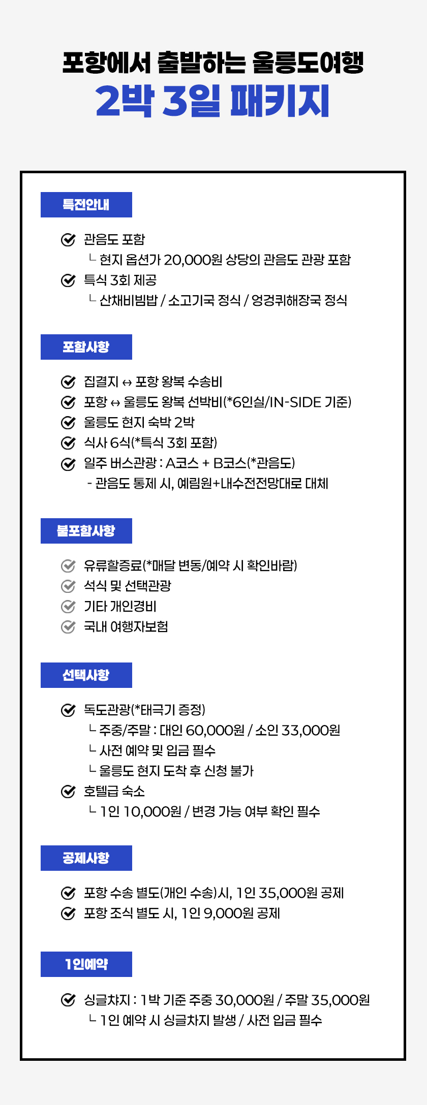 ㆍ특식 3식 포함 총 식사 6식(포항 1식+울릉도 5식)