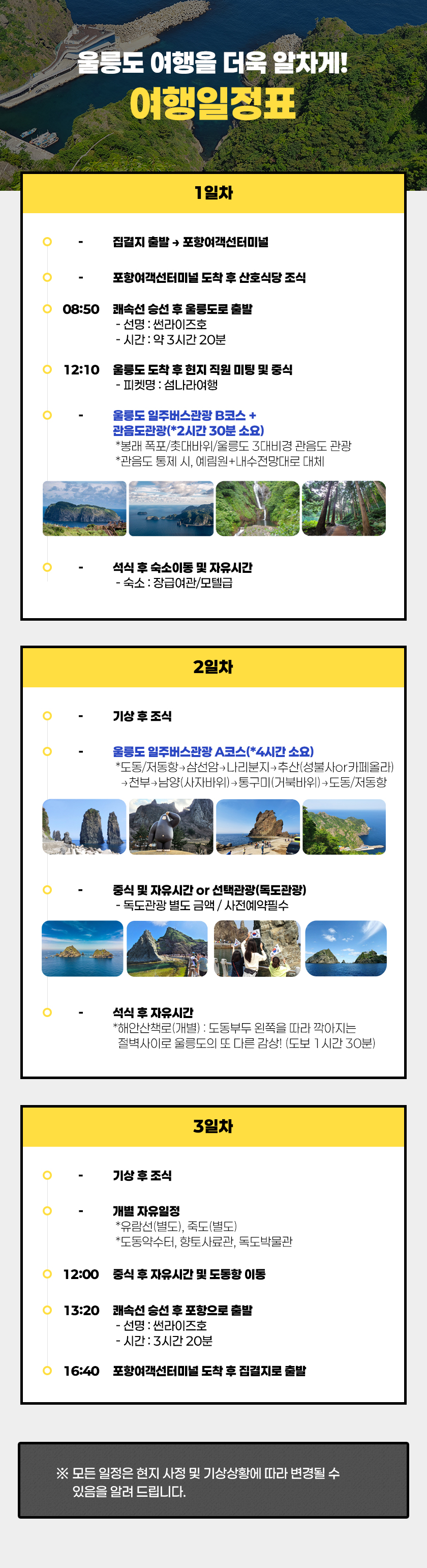 포항 출발! 을릉도여행 1박2일!