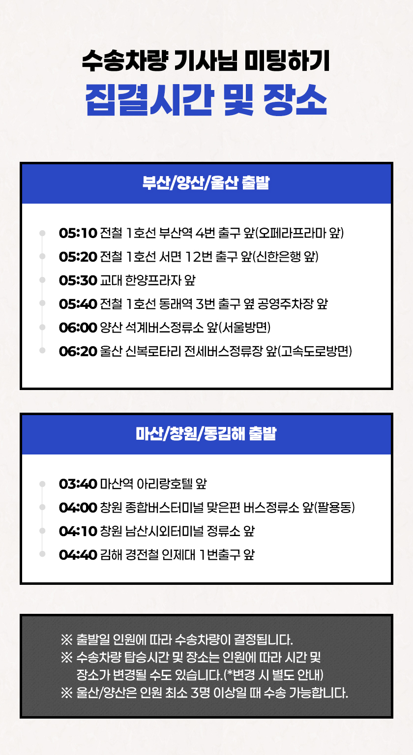 ㆍ⑦집결지에서 기사님 미팅 후 출발(*예약번호 or 성함,연락처)