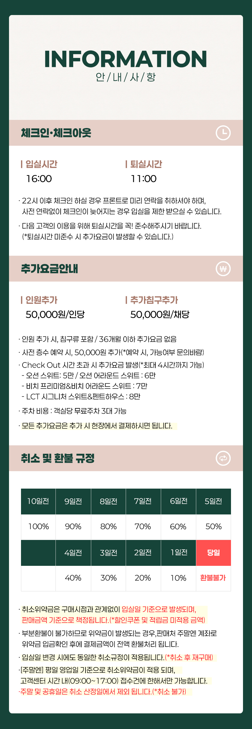 · 객실 마감일 경우, 예약 건 안내 후 취소처리됩니다.