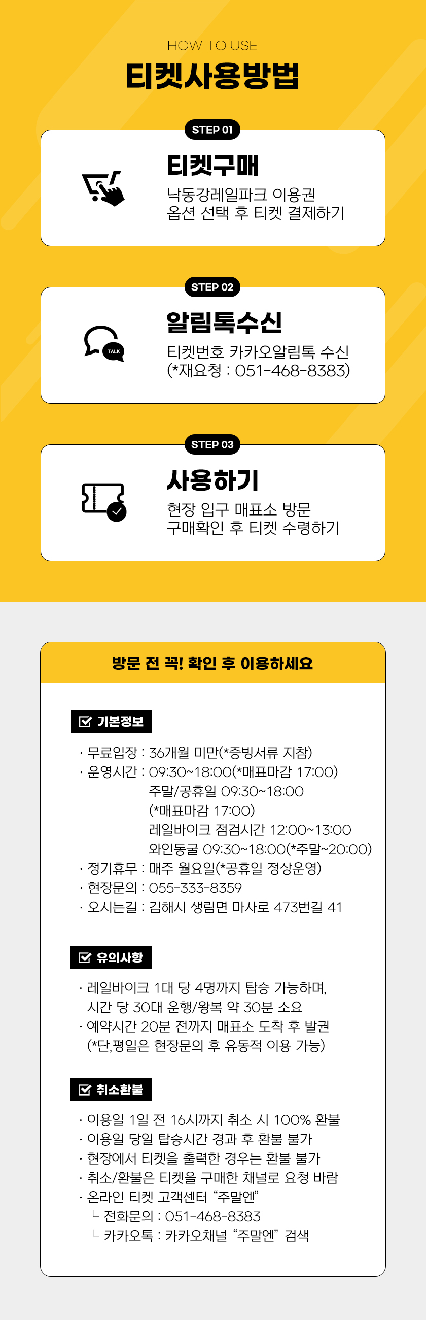 ㆍ①티켓구매 → ②알림톡 수신 → ③매표소 본인 확인 후 티켓 수령(*성함,연락처)