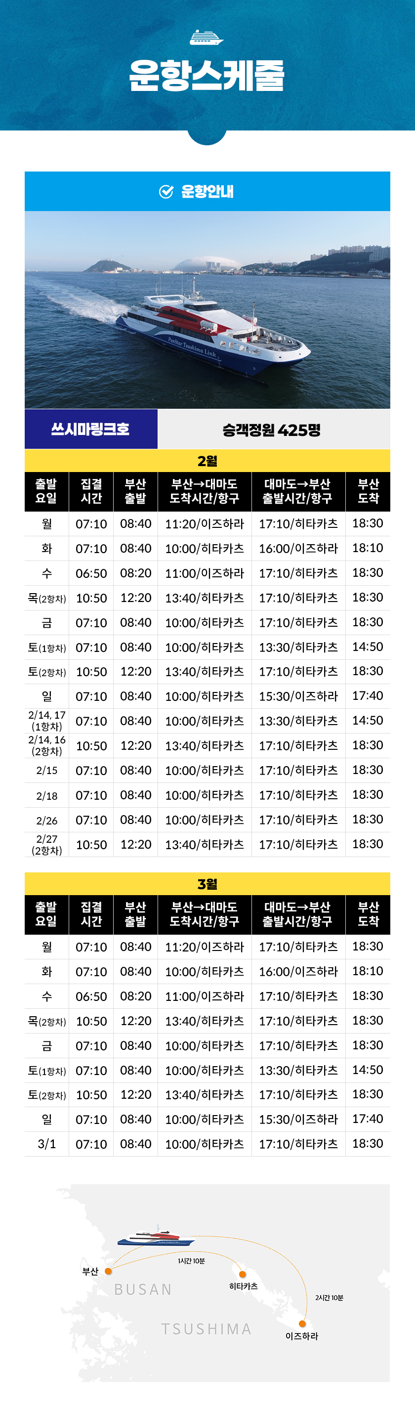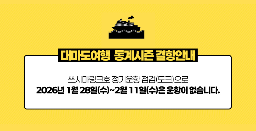 ㆍ2026년 1월 29일(목)~2월 11일(수) 쓰시마링크호 정기운항 점검(도크)기간으로 운항이 없습니다.