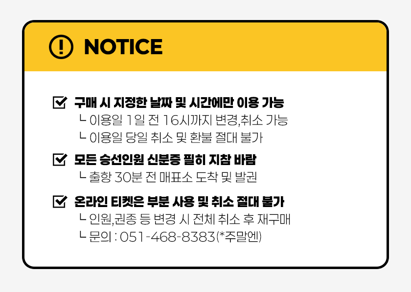 ㆍ모든 승선인원 신분증 지참(*미지참 시 승선 불가)